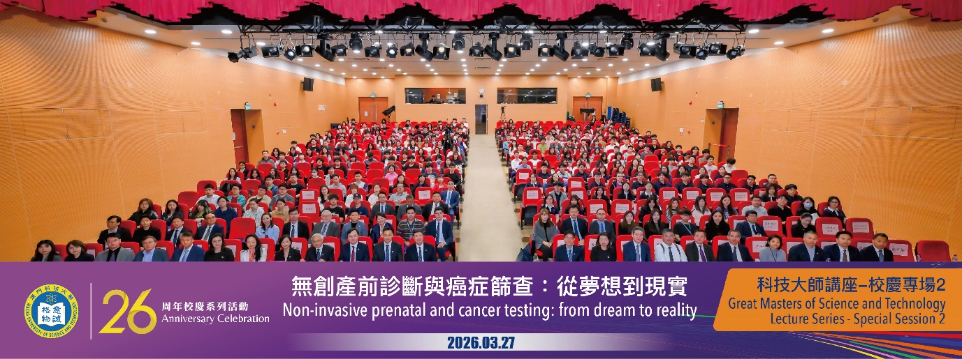 澳门科技大学26周年校庆系列活动之校庆专场讲座1于2026年3月26日上午在澳科大D座礼堂顺利举行。本次讲座邀请到中国科学院院士、发展中国家科学院院士、香港中文大学(深圳)理工学院院长、2026年澳科...