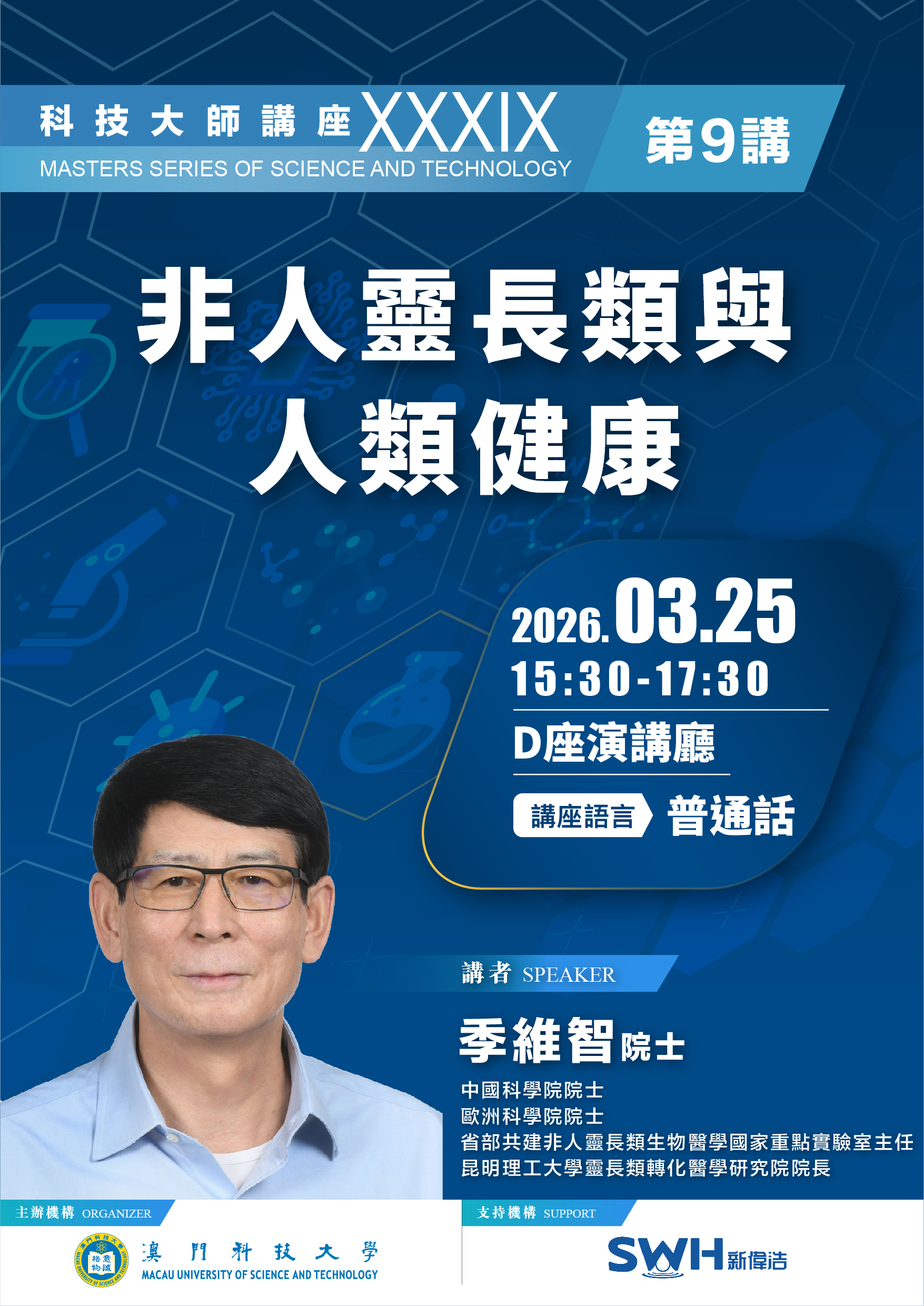 日期:2026年3月25日(週三)時間:15:30-17:30地點:澳門科技大學D座演講廳主題:非人靈長類與人類健康嘉賓:季維智院士 - 中國科學院院士、歐洲科學院院士、省部共建非人靈長類生物醫學國家...
