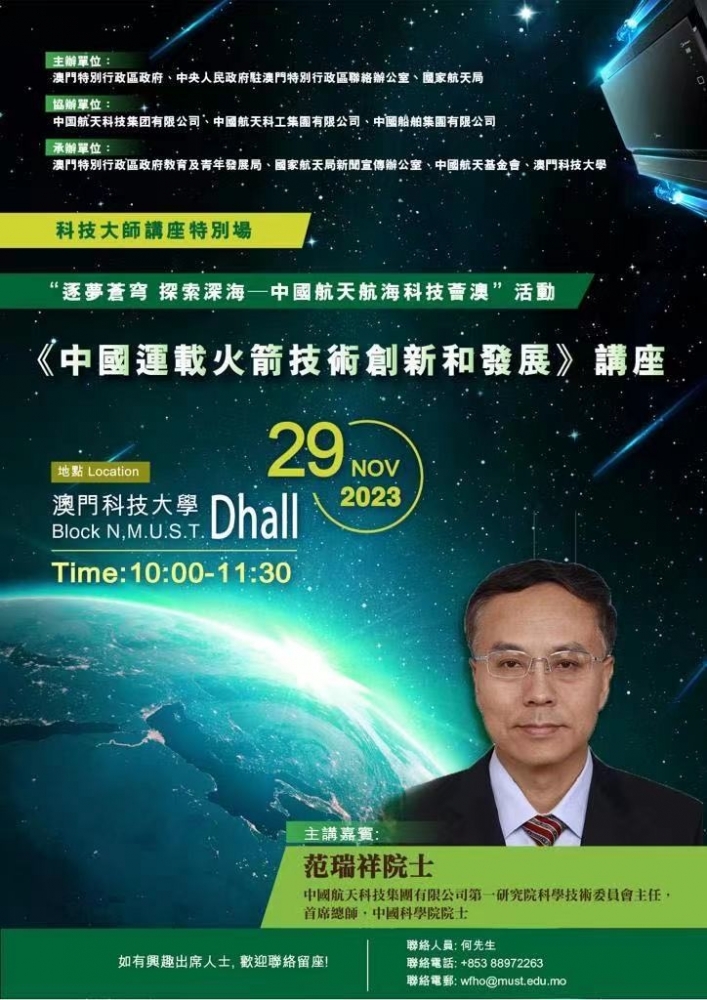 【活动预告】“逐梦苍穹 探索深海” — 中国航天航海科技荟澳活动系列讲座由澳门特别行政区政府、中央人民政府驻澳门特别行政区联络办公室、国家航天局主办,中国航天科技集团有限公司、中国航天科工集团有限公司...