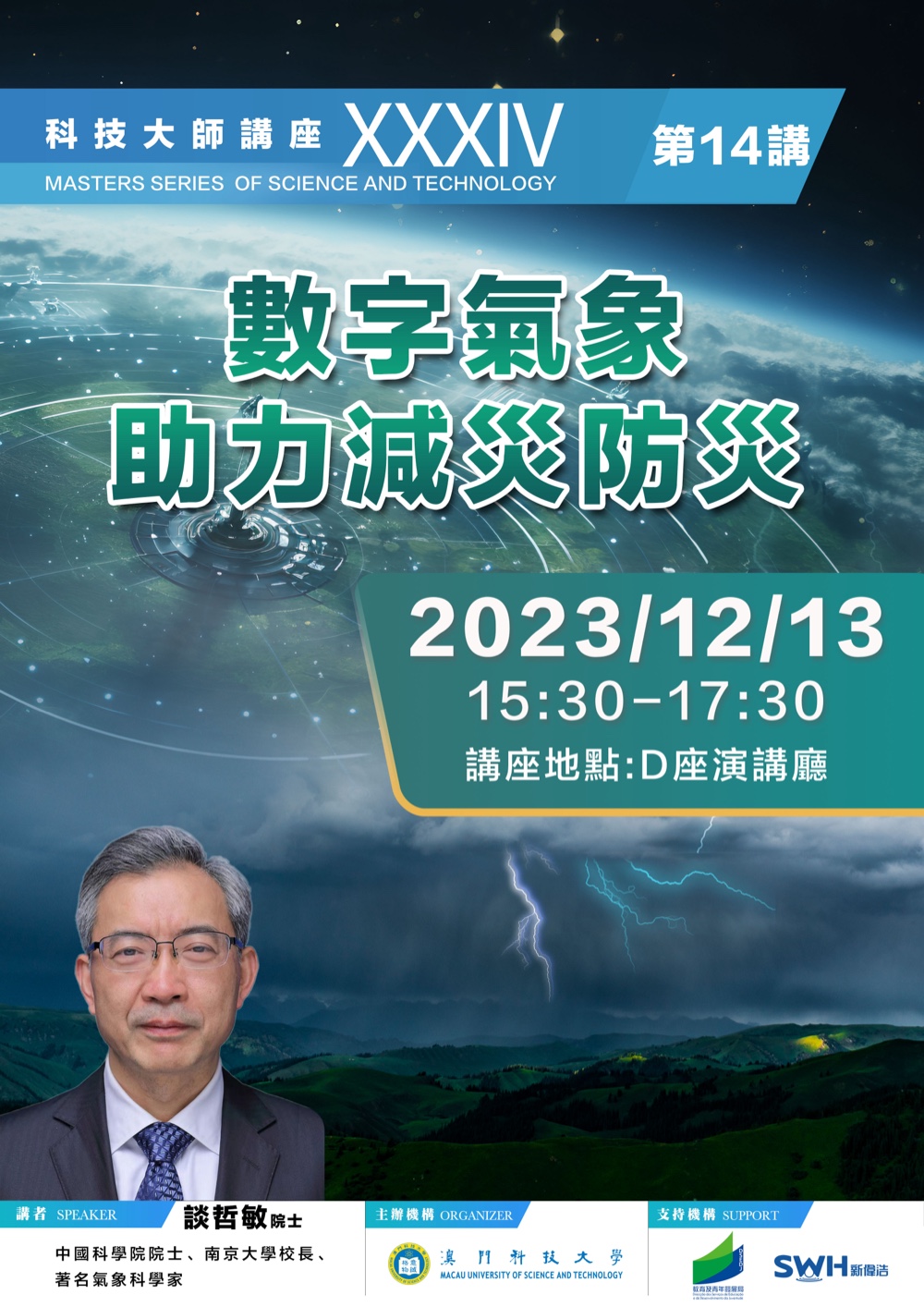 活动预告:中国科学院院士、南京大学校长、著名气象科学家谈哲敏院士主讲“数字气象助力减灾防灾”由澳门科技大学主办,澳门特别行政区政府教育及青年发展局、新伟浩进出口贸易有限公司支持的本学期第十四场科技大师...