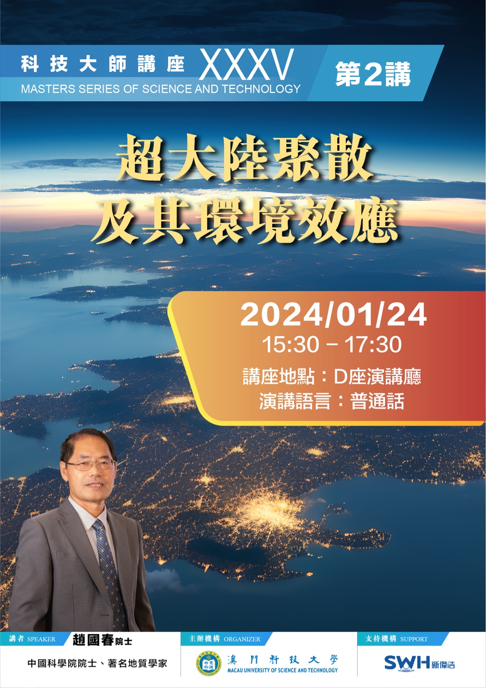 活动预告:中国科学院院士、著名地质学家赵国春谈“超大陆聚散及其环境效应”由澳门科技大学主办,新伟浩进出口贸易有限公司支持的本学期第二场科技大师讲座将于1月24日(周三)下午3:30于大学D座演讲厅举行...