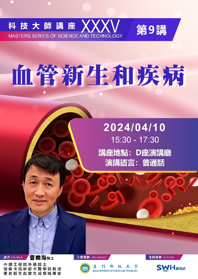 【活动预告】《科技大师讲座XXXV》第九场 ─ 曹义海院士 ─ 血管新生和疾病