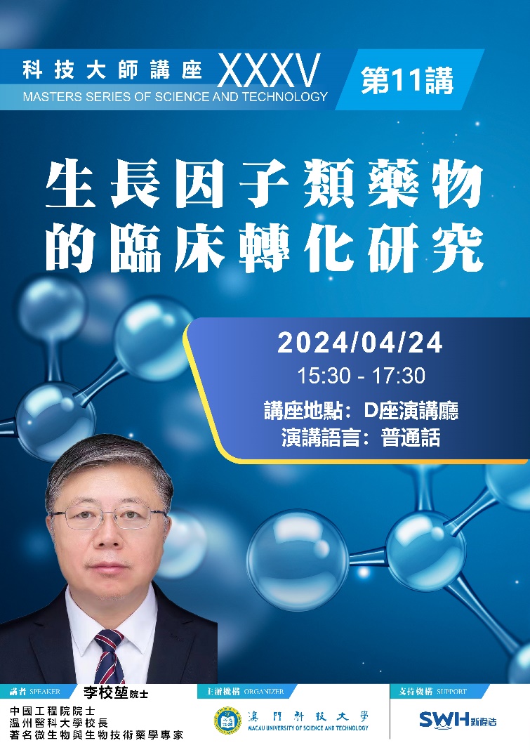 【活动预告】《科技大师讲座XXXV》第11场 - 生长因子类药物的临床转化研究