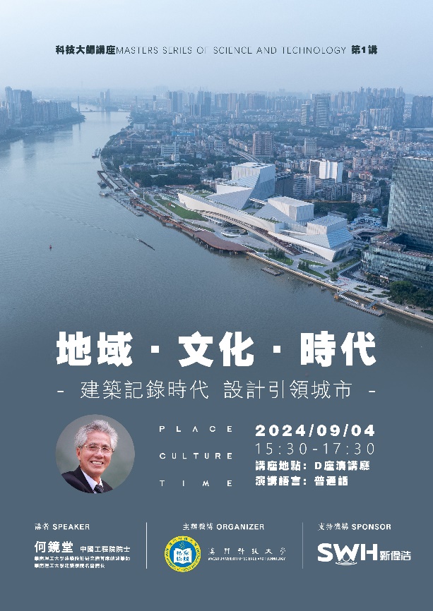 日期:2024年9月4日(周三)时间:15:30-17:30地点:澳门科技大学D座演讲厅主题:地域 文化 时代 — 建筑记录时代 设计引领城市嘉宾:何镜堂院士 - 中国工程院院士,华南理工大学建筑设计...