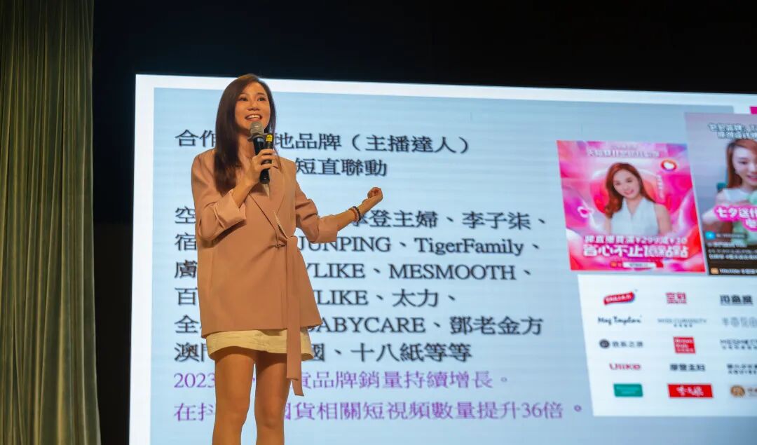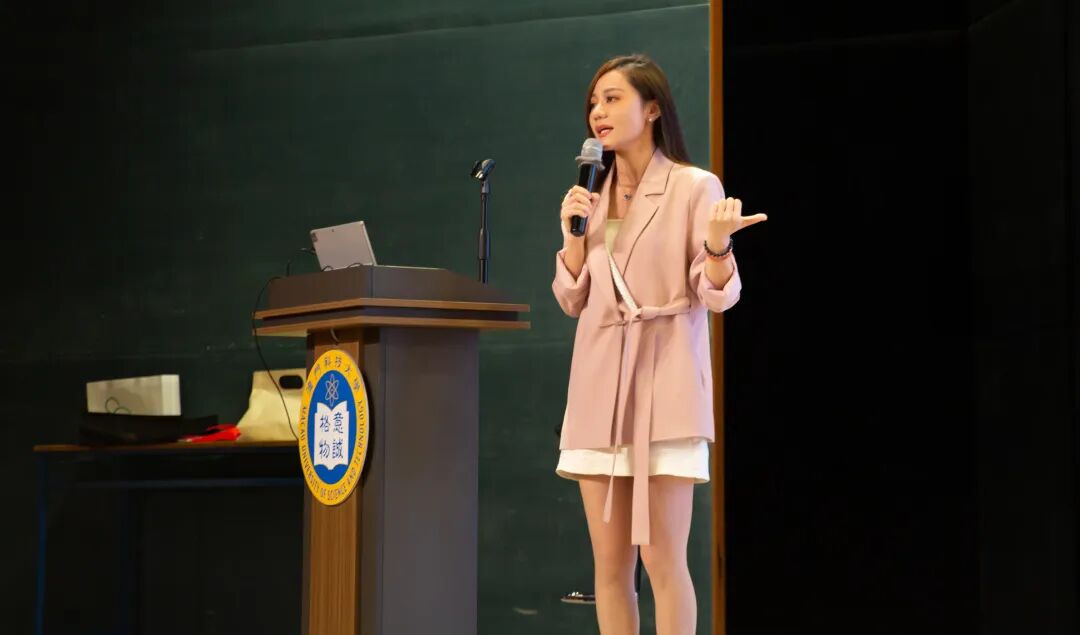 接下來,戴顯揚先生邀請了余佩欣女士與大家交流她的直播經歷。余女士分享了自己製作的熱門視頻以及製作視頻時所遇到的困難。她通過列舉來展現國貨品牌的崛起以及短視頻購物的興起。余佩欣女士還向大家介紹了她在直播行業的心得,並想通過自己的經歷告訴大家身為自媒體人不要過於畏手畏腳,只要用心,終究會獲得成功。