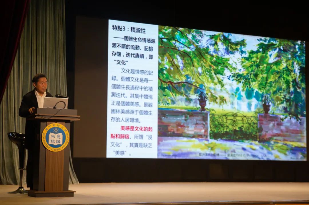 由澳門科技大學文體發展辦公室主辦的「藝術大講堂」系列講座之「人居環境個體美感與美麗中國建設」於2024年3月19日下午在澳門科技大學 D 座大禮堂成功舉辦。本場講座邀請到中國首位風景園林學博士,同濟大學風景園林學科委員會主任,澳門科技大學特聘教授、博導劉濱誼主講。
