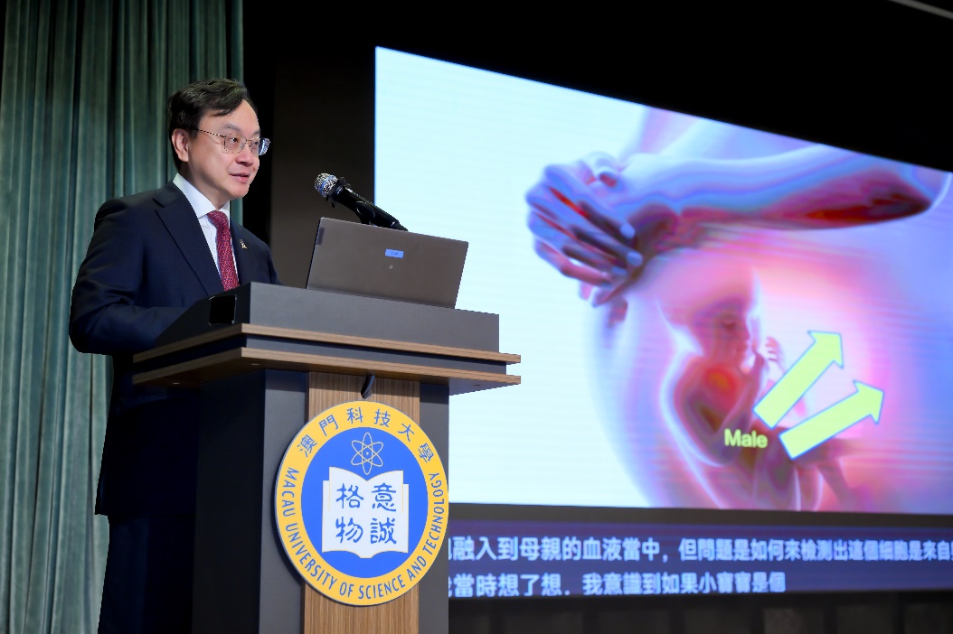 澳門科技大學26周年校慶系列活動之校慶專場講座2於2026年3月27日上午在澳科大D座禮堂順利舉行。本場講座邀請到中國科學院院士、歐洲科學院外籍院士、香港中文大學校長、香港中文大學李嘉誠醫學講座教授、2026年澳科大榮譽博士盧煜明院士帶來題為「無創產前診斷與癌症篩查:從夢想到現實」的演講。