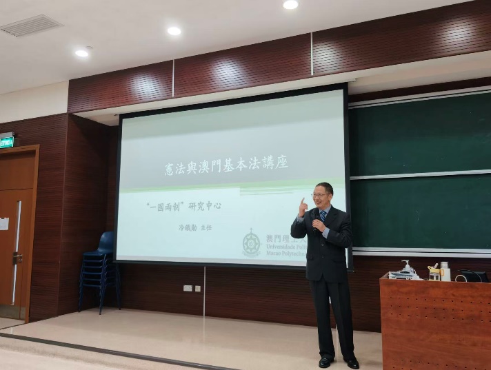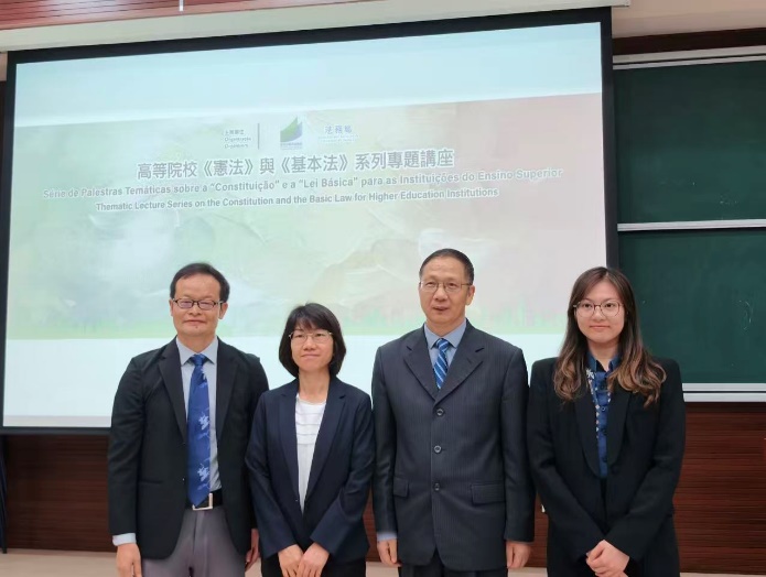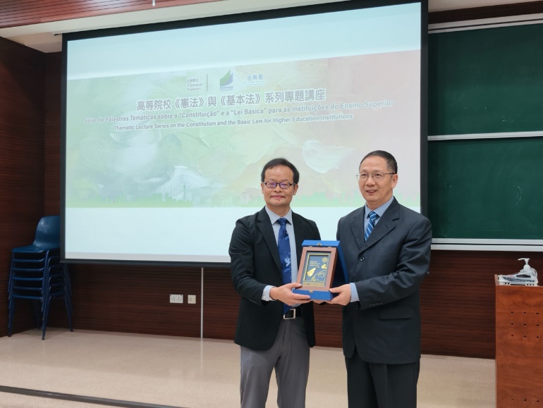 為落實推廣普法教育工作,加深本澳高等院校教職人員及學生對《憲法》及《基本法》的認識,深入了解總體國家安全觀的內涵和意義,教育及青年發展局與法務局於2025/2026學年合辦高等院校《憲法》與《基本法》系列專題講座。是次活動特邀冷鐵勛主任主講「憲法與基本法」專題講座,並主導「法青面對面」討論會。